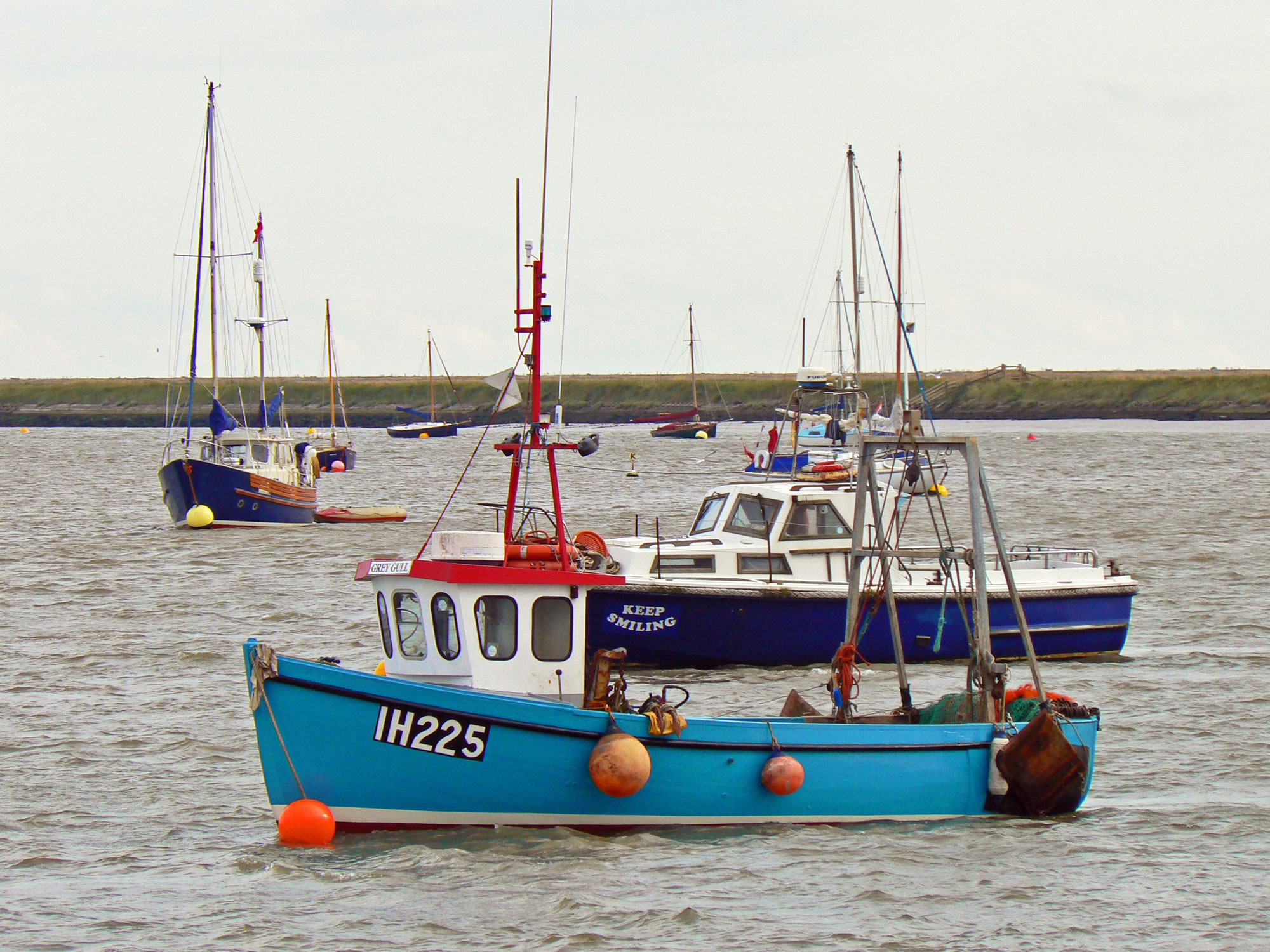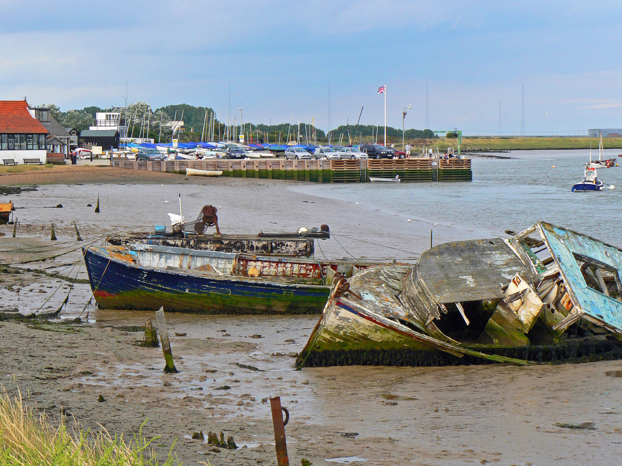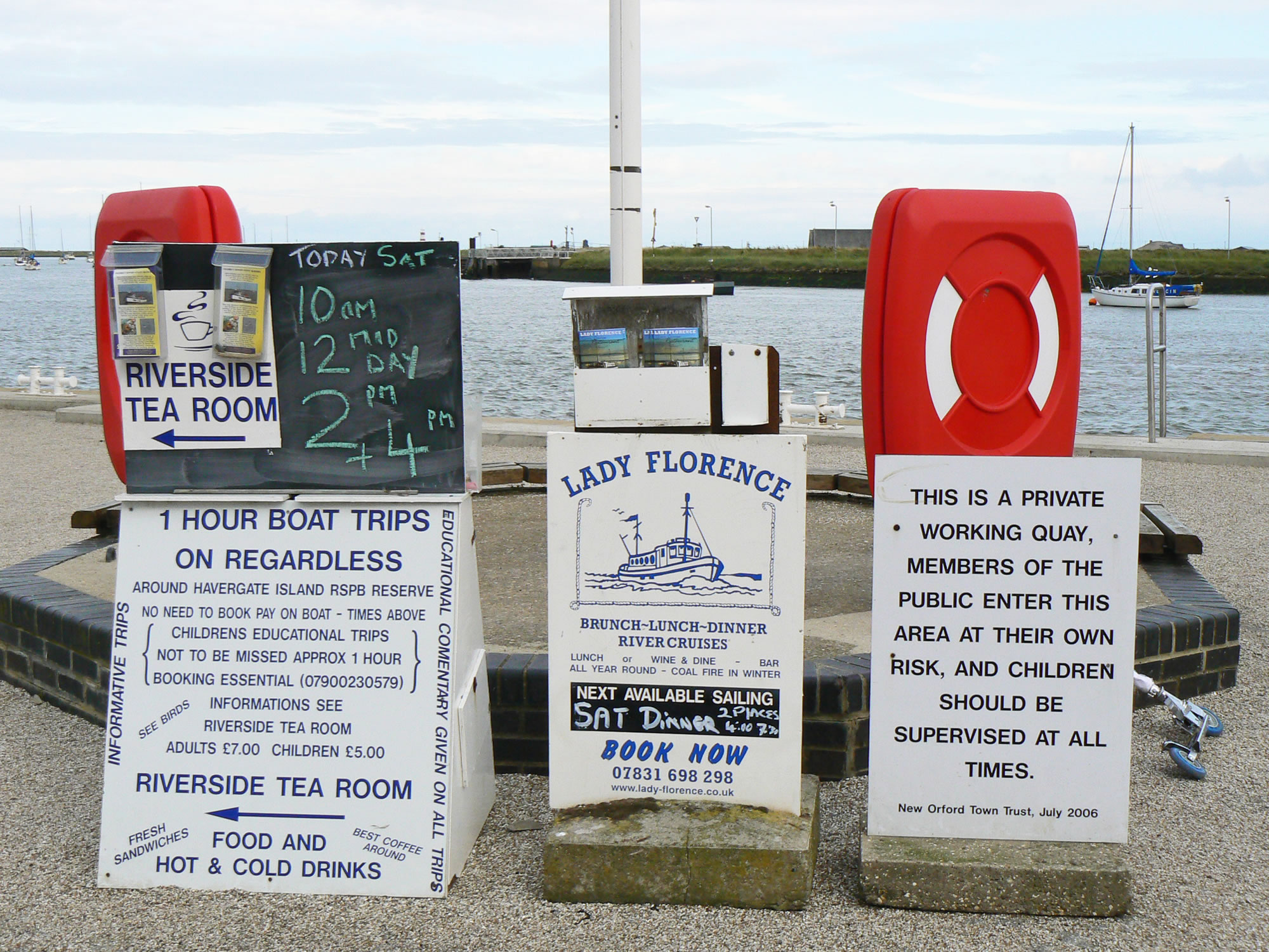 We start our tour of Orford at the quay, a peaceful gateway to nature - but that wasn't always the case. It's thought that, many centuries ago, the vegetated shingle hadn't yet formed, and the harbour looked directly out to sea. It was a busy place that welcomed travellers and traders from far and wide. Fishermen have operated here for years too. Seafood is caught in all seasons, from lobsters in spring to herring in winter. Orford's oysters were particularly renowned, but they disappeared from these waters in the early 1900s. It fell to a local man, Richard Pinney, to being them back. He imported oysters from Portugal, and successful reintroduced the hatcheries. They, along with other fresh catches, are widely available in local restaurants and for sale from a shed on the quay. Today, Orford is still a bustling boating centre, with pleasure boats by far the majority. The quay contains a riverside tea tearoom and a National Trust boat takes visitors over to Orford Ness. |